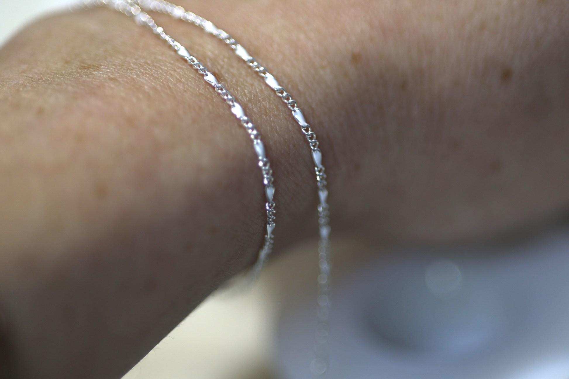 One meter of chain will make approximately five and a half bracelets (the average is 7 inches).